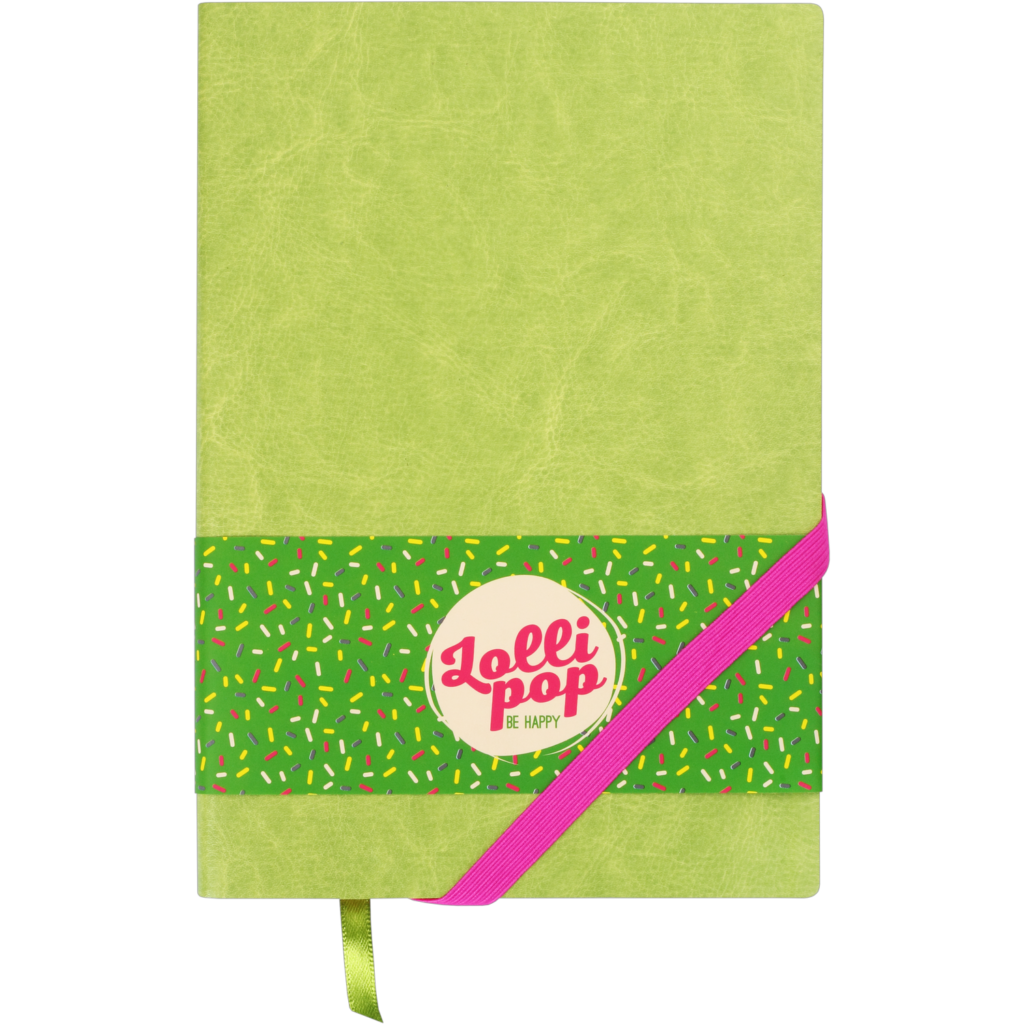Блокнот деловой LOLLIPOP, А5, 96л., обложка из кожзама, на резинке, чистый, салатовый - Описание