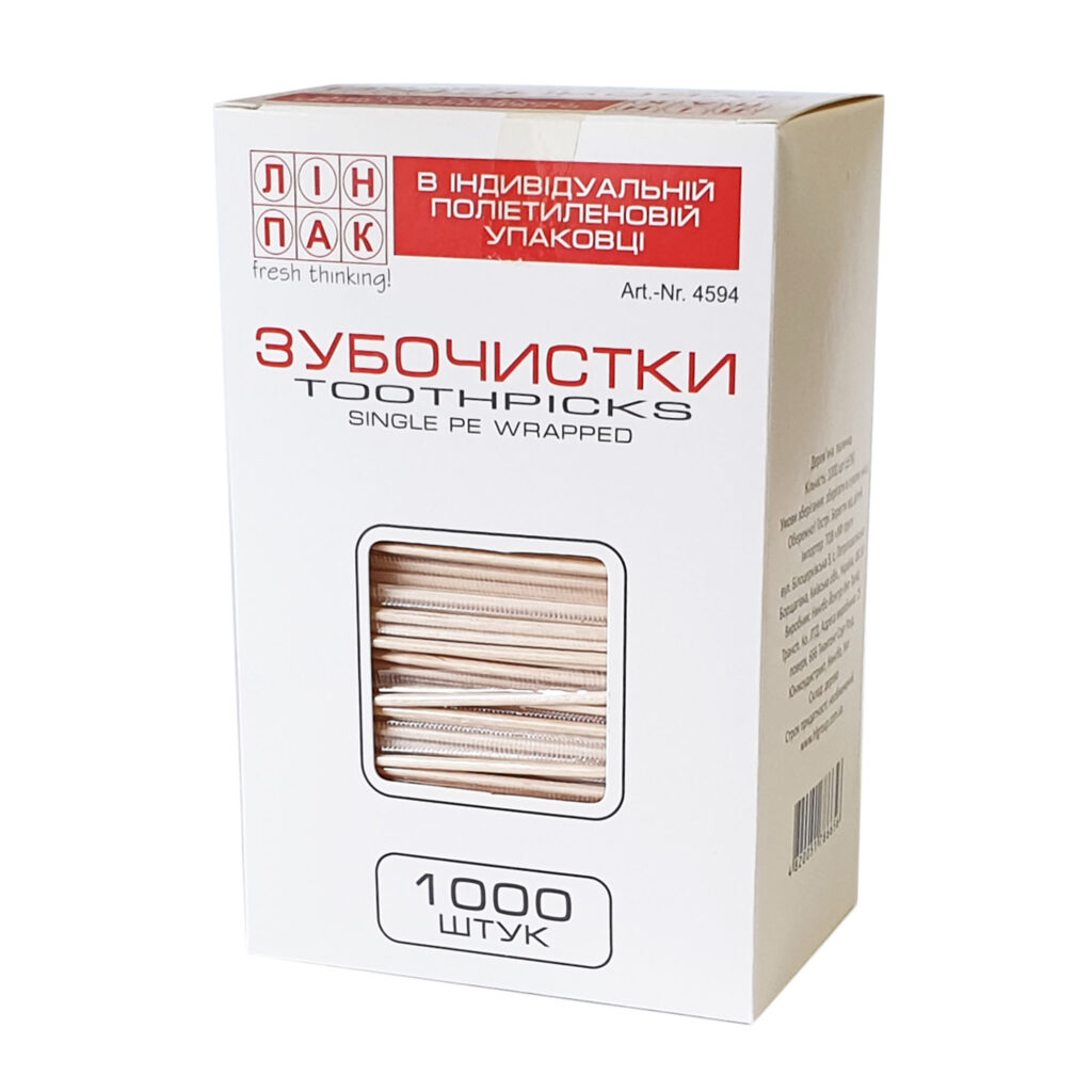 Зубочистки деревянные ЛИНПАК 1000шт, в индивидуальной полиетиленовой упаковке - Описание