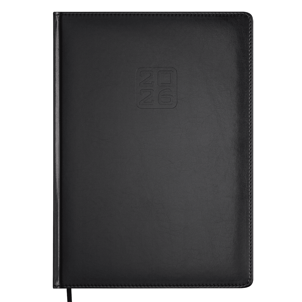 Щоденник датов. 2026 BRAVO, A4, чорний, штуч. шкіра/поролон - Описание