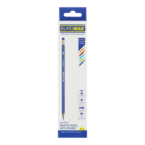 Олівець графітовий WHITE LINE, НВ, з гумкою, асорті, з білою смужкою, карт. коробка 12 шт - Характеристики