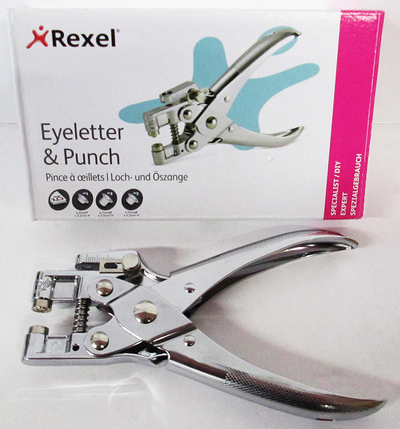 Заклепочник пробивает стопку бумаг (до 25 листов) или картона и сшивает их с помощью люверсов.
