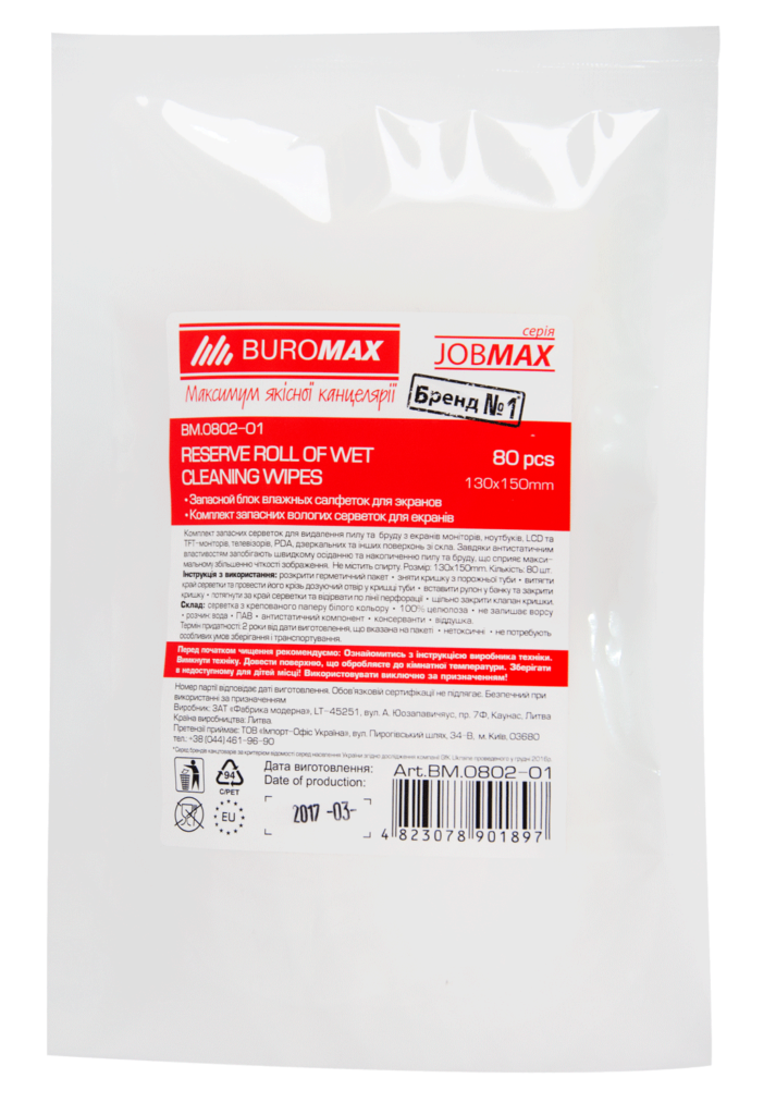 Запасной блок салфеток влажных для чистки экранов, мониторов и оптики JOBMAX - Характеристики