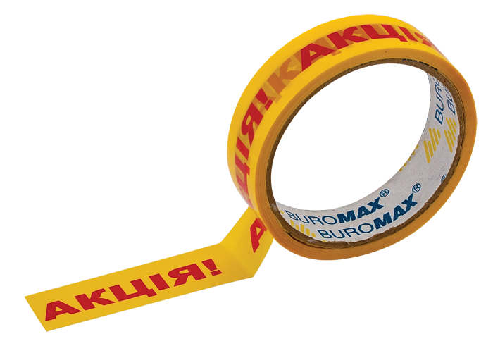 Клейка стрічка канцелярська, 24мм х 30м, жовта, з нанесенням «АКЦІЯ», 6 шт. в упаковці - Характеристики