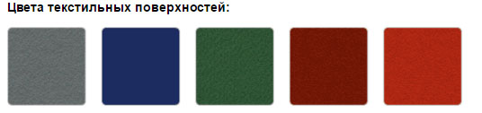 — поверхность из тестиля — синего, серого, красного, бордового или зеленого цвета