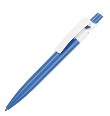 Пластиковая автоматическая ручка с шариковым стержнем синего цвета. Цветовой ассортимент представлен 5-ю яркими цветами.