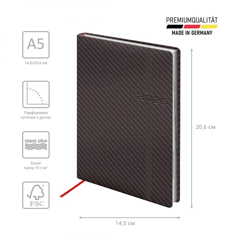 Ежедневник датированный BRUNNEN 2026 СТАНДАРТ SOFT CARBON, серый - Характеристики