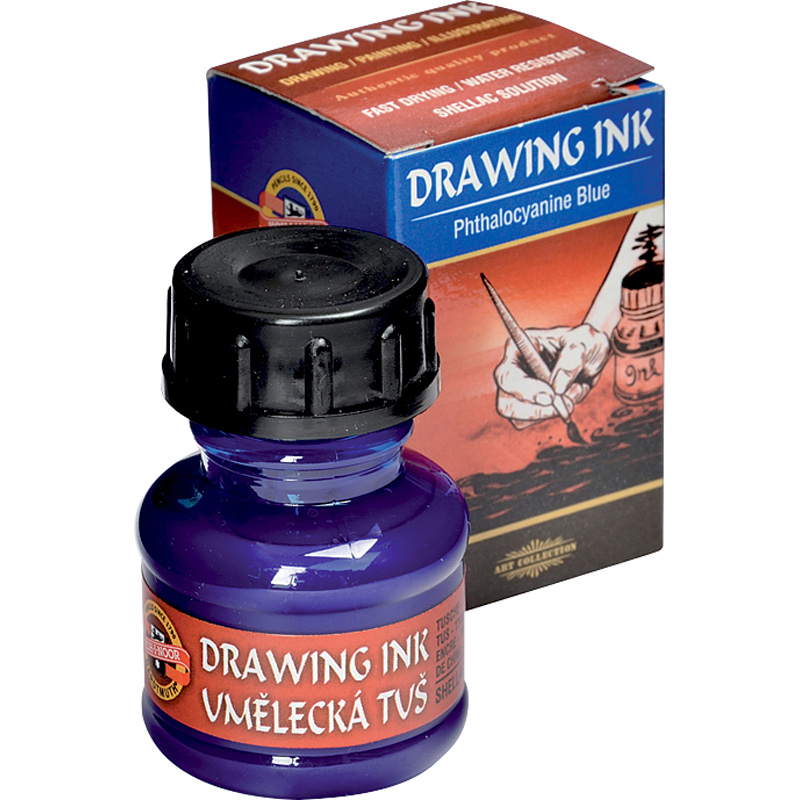 Тушь художественная KOH-I-NOOR, 20 г, phthalocyanine blue/фталоцианиново-синий 2400 - Описание