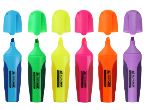 -Високоякісні чорнила текстових маркерів BUROMAX спеціально розроблені для зручного та легкого виділення тексту на різних видах паперу.За допомогою текстових маркерів можна швидко виділити як текст, написаний від руки, на папері різної щільності, так і текст на факсовому папері, а також текст, надрукований за допомогою різних принтерів та копіювальних апаратів.