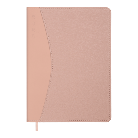 Гнучка знімна обкладинка-органайзер з штучної шкіри щоденника AURORA виконана в ніжному пастельному дизайні, що поєднує матеріал з фактурної шкіри та вставку на корінці з гладкої шкіри. Елементи оздоблення – сліпе тиснення року та декоративний шов по периметру і на стику фактур. Родзинкою дизайну є тонування сріблом зрізу внутрішнього блоку. З середини обкладинка має по кишені для візиток, нотаток тощо на передній та задній стороні, а також петельку для закріплення письмового приладдя.