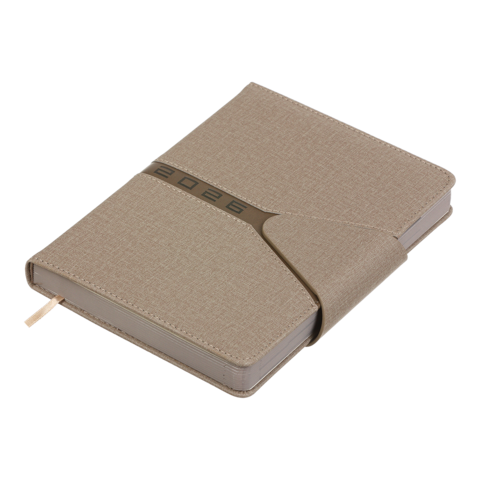 Щоденник датований 2026 NAVIGATOR, A5, св.коричневий, штуч. шкіра/поролон - Опис