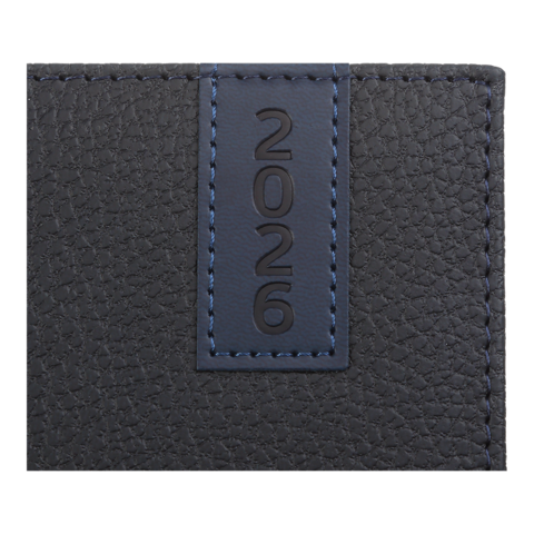 Щоденник датований 2026 VERTICAL, A5, синій, штуч. шкіра/поролон - Опис