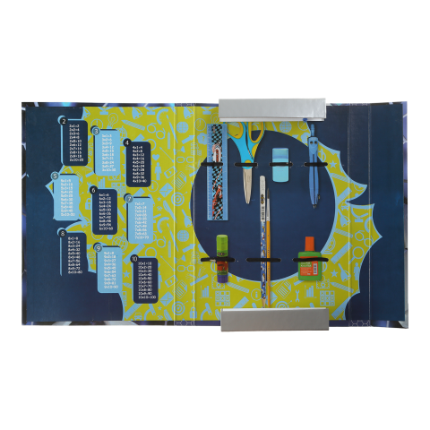 - права внутрішня сторона – з резинками-фіксаторами та зображенням предметів, якими можна наповнити папку