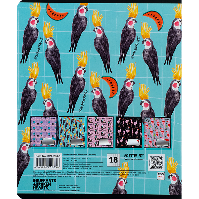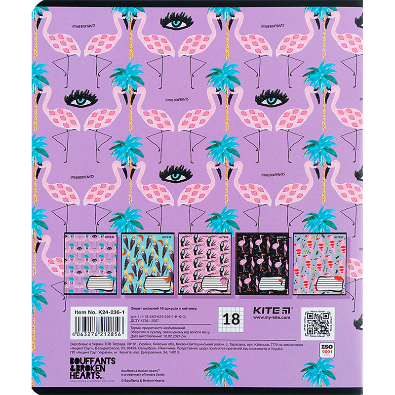 Зошит шкільний, 18 аркушів, клітинка. Гібридний лак та вибірковий УФ лак на обкладинці. В серії 5 дизайнів(продається спайками по 20шт в спайці, 330.00грн/спайка) - Характеристики