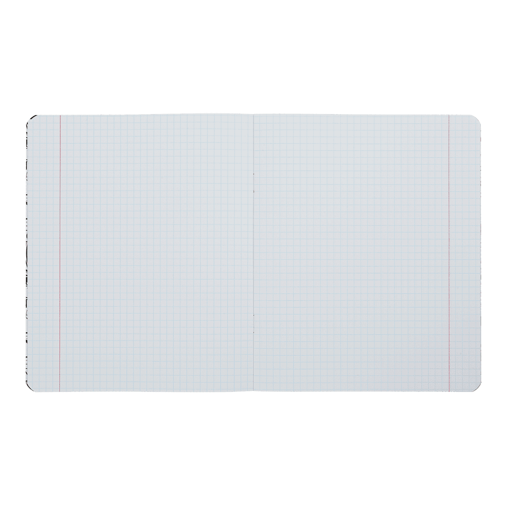 - Зошит в клітинку, друк блакитним кольором, має червоні поля