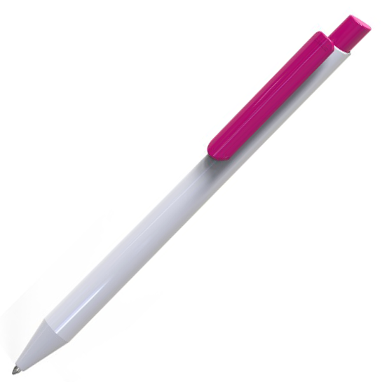 Пластикова автоматична ручка із кульковим стрижнем синього кольору. Колірний асортимент представлений 8-ма яскравими кольорами.