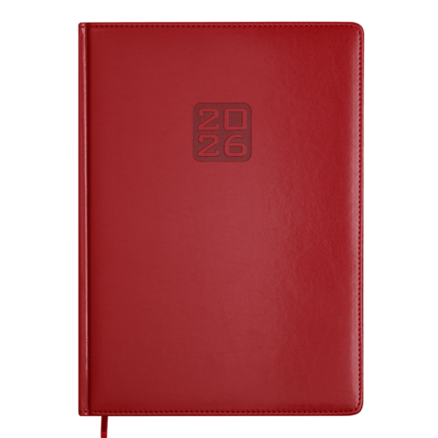 Щоденник дат. 2026 BRAVO, A4, червоний, штуч. кожа/поролон - Опис